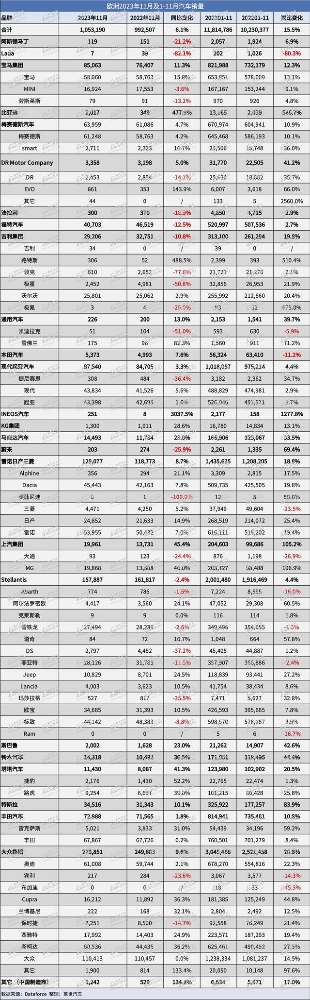 根據(jù)市場(chǎng)研究機(jī)構(gòu)Dataforce的初步數(shù)據(jù),11月份,歐洲新車銷量同比上漲6.1%,超過(guò)105萬(wàn)輛。