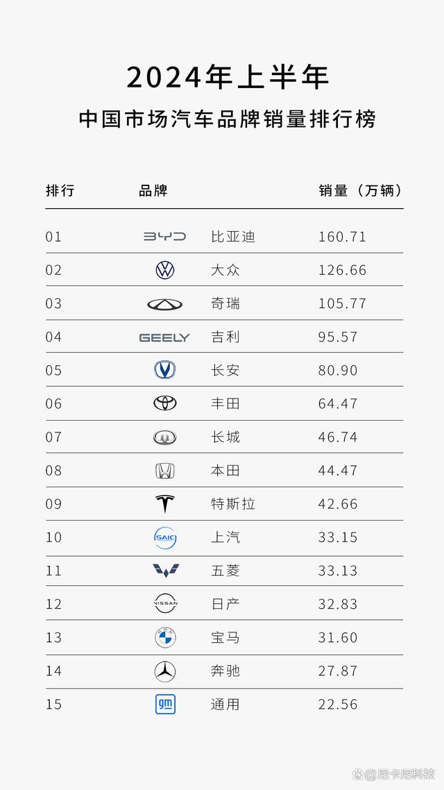 2024年上半年國內車企銷量排名出爐,中國品牌集體崛起!