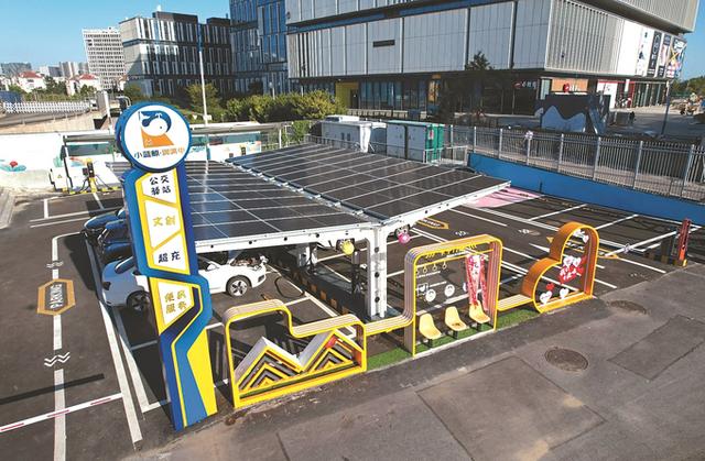 秦淮區(qū)卡子門公交主題“光儲(chǔ)充服”充能驛站,為國(guó)內(nèi)首座一體化公交充能驛站,建有1套裝機(jī)功率為35千瓦的光伏雨棚,同步配置10千瓦時(shí)儲(chǔ)能柜,全年可提供約3.5萬千瓦時(shí)綠電,設(shè)置8個(gè)充電樁,可以同時(shí)為11輛新能源汽車充電。
