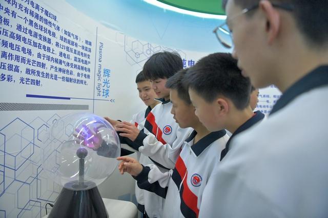 在南方電網(wǎng)貴州安順供電局節(jié)能展示廳,同學(xué)們正在體驗(yàn)輝光球項(xiàng)目。