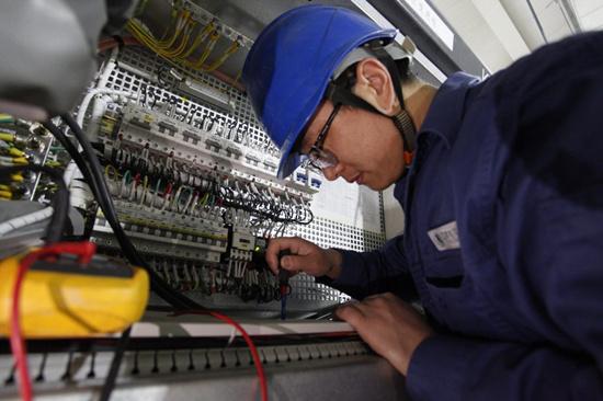 河北送變電公司員工對220千伏許營變電站改造工程進行投運前裝置狀態(tài)檢查。谷玉龍攝
