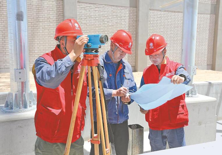 在750千伏烏圖(昆侖山)輸變電工程現(xiàn)場(chǎng),臨時(shí)黨支部黨員和技術(shù)人員開展施工勘測(cè)。馬清 攝