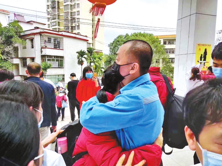 “你要好好的,平安回來,我和孩子們都想你?!?月14日,情人節(jié)這天,海南電網(wǎng)五指山供電局正在值班的曾斡得知妻子胡穎青支援武漢的申請(qǐng)已經(jīng)通過,要立即出發(fā),就請(qǐng)假?gòu)淖冸娬净丶?,帶著兒子趕到醫(yī)院給妻子送上一個(gè)深情的擁抱。