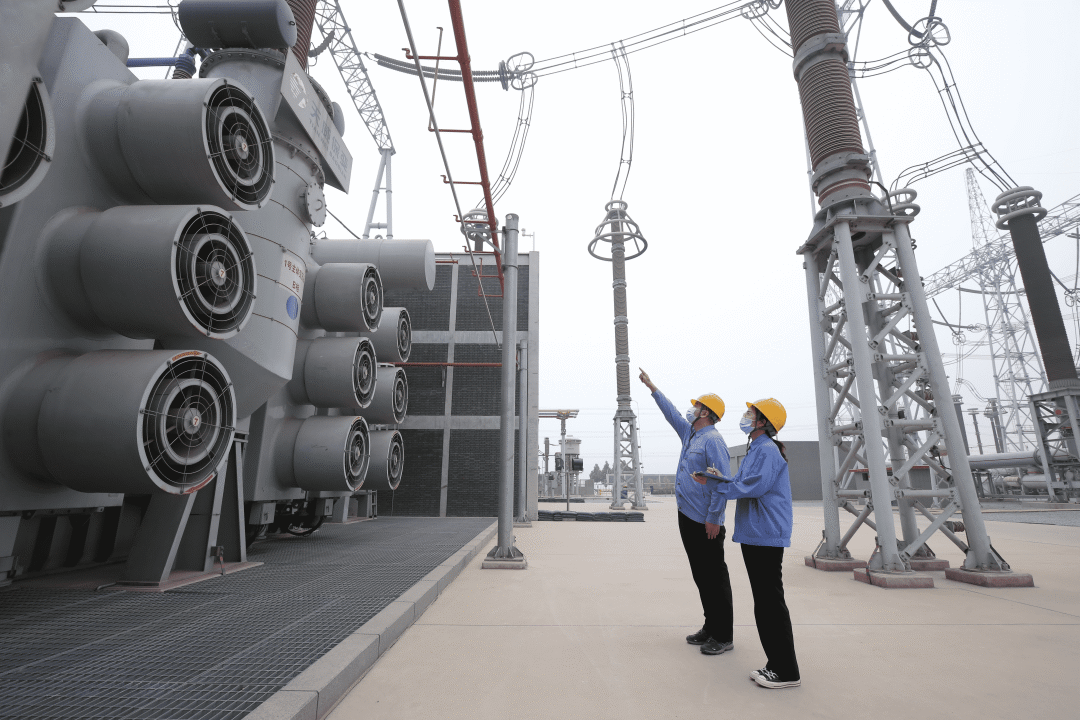 國網(wǎng)河北電力員工在1000千伏雄安變電站開展迎峰度夏設(shè)備特巡。