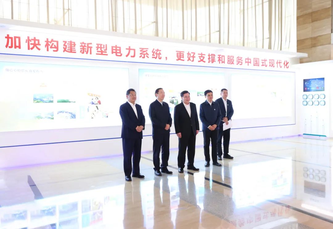 會(huì)談前,胡昌升一行參觀公司發(fā)展成就展。甘肅省政府秘書長(zhǎng)張偉文,省委副秘書長(zhǎng)、省委辦公廳主任焦石,省委、省政府相關(guān)部門主要負(fù)責(zé)人,公司總經(jīng)理助理兼辦公室主任王抒祥,總部有關(guān)部門和國(guó)網(wǎng)甘肅電力負(fù)責(zé)人參加會(huì)談。
