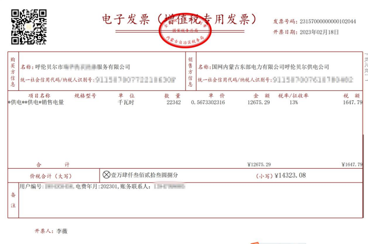 2月18日,國網(wǎng)呼倫貝爾供電公司西山供電營業(yè)站李薇通過營銷系統(tǒng)開具該公司電費(fèi)用戶首張電子專用發(fā)票,標(biāo)志著國網(wǎng)蒙東電力正式貫通數(shù)字化電子發(fā)票“業(yè)財稅票”數(shù)據(jù)鏈路,稅務(wù)數(shù)字化轉(zhuǎn)型工作邁上新臺階。“以后我們都能在營銷系統(tǒng)上直接為用戶開具發(fā)票了,不需要再切換至稅務(wù)局系統(tǒng),業(yè)務(wù)辦理更加便捷,大大提升了工作效率。”李薇介紹道。