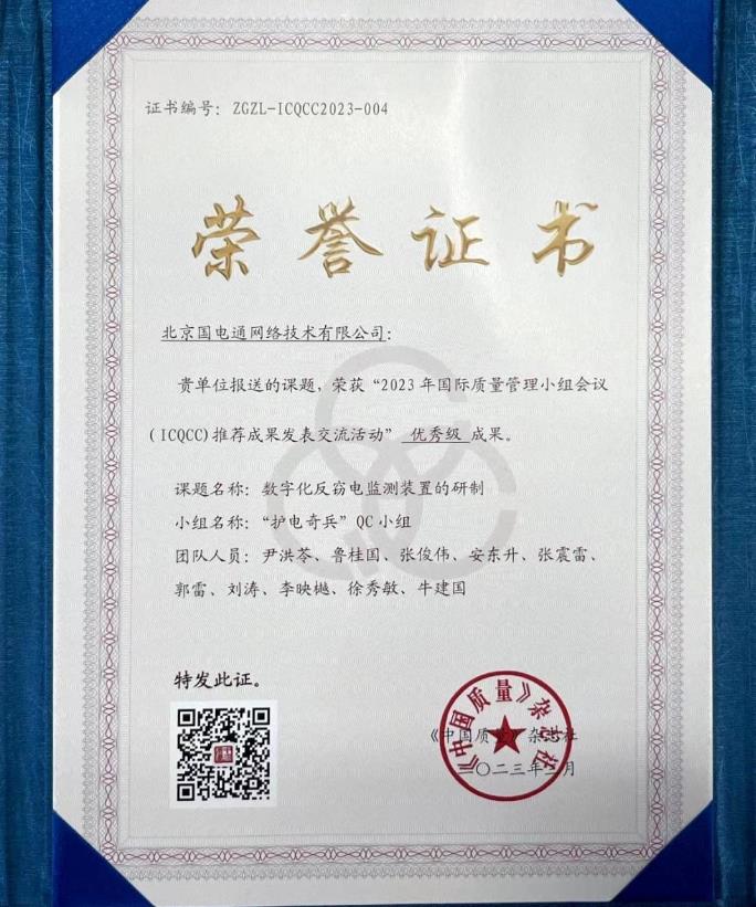 國網(wǎng)信產(chǎn)國電通“護(hù)電奇兵”QC小組成果獲國際質(zhì)量管理小組優(yōu)秀獎(jiǎng)