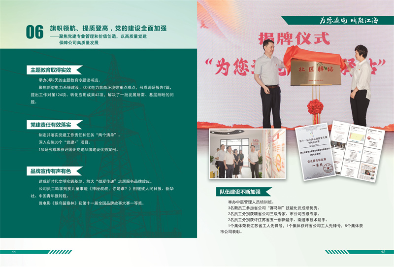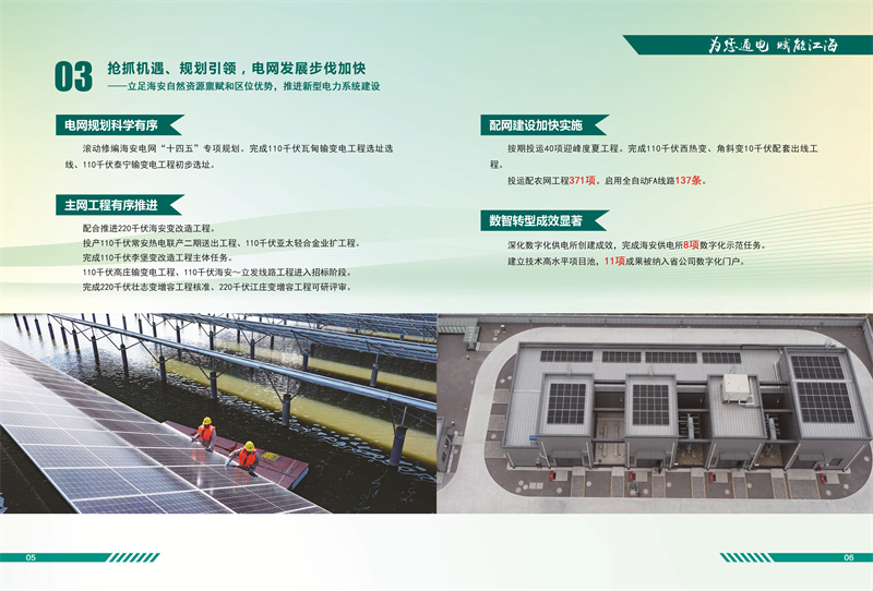 《白皮書》披露,2023年,該公司組織召開海安市迎峰度夏保供工作會議,深挖非工空調(diào)負荷調(diào)控潛力,促請政府出臺需求響應、非工負荷調(diào)節(jié)能力建設等支持政策。堅持“杜絕增量、清除存量”原則,拆除1000千伏泰吳線下方違規(guī)大棚。滾動修編海安電網(wǎng)“十四五”專項計劃,主網(wǎng)工程有序推進。深化數(shù)字化供電所創(chuàng)建成效,完成8項數(shù)字化示范任務。11項成果被納入省公司數(shù)字化門戶。完成發(fā)明專利授權4項、成果轉化2項,年度QC項目榮獲市公司一等獎。深化“開門接電”示范區(qū)建設,全面省級以上園區(qū)全覆蓋,成立重大項目服務小組,服務萬噸冷鏈等14個省市級重大項目接電。公司員工助學殘疾兒童事跡《神秘叔叔,你是誰?》相繼被人民日報、新華社、中國青年報等中央媒體相繼轉載。