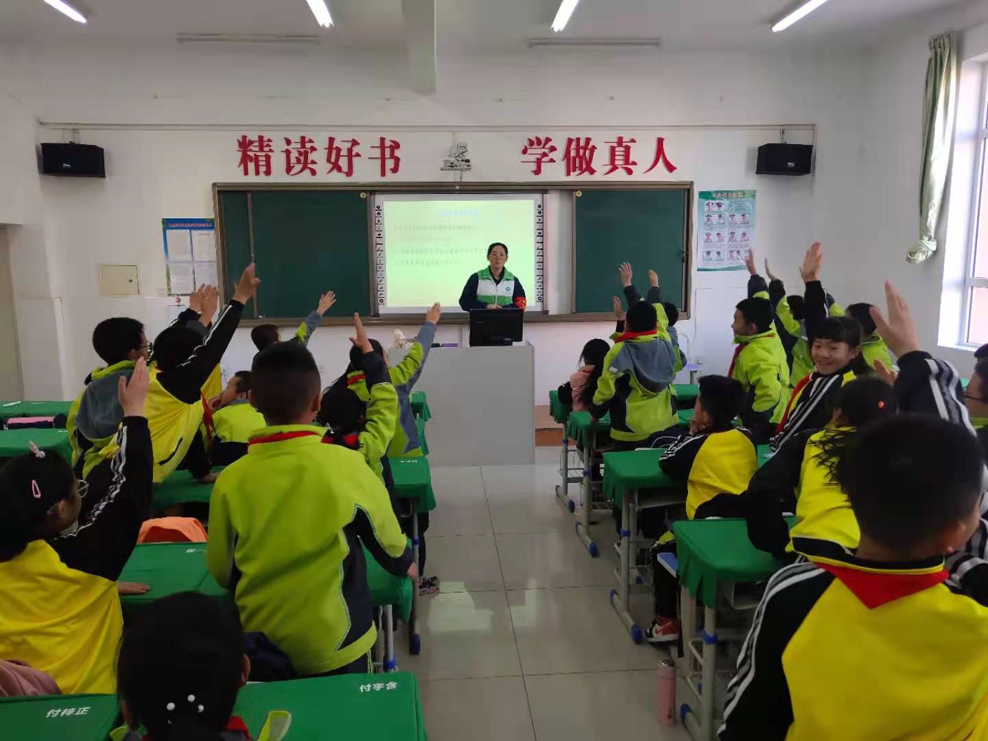 “濕手能不能觸摸家用電?”你們在生活中有過觸電的經(jīng)歷嗎?”為普及小學(xué)生安全用電知識和觸電急救技能,課堂上,志愿者們結(jié)合設(shè)計精美的PPT,帶領(lǐng)小學(xué)生們同看視頻,同唱歌謠,通過現(xiàn)場問答與同學(xué)們互動,活躍了課堂氣氛,提升了小學(xué)生對安全用電意識。