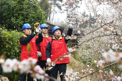 踏上蜿蜒的小路,穿過(guò)層層梅花林,國(guó)網(wǎng)福州供電公司共產(chǎn)黨員服務(wù)隊(duì)隊(duì)員們正輕車熟路地沿著高空銀線查看線路走廊,并對(duì)線路進(jìn)行日常的巡視測(cè)溫,以確保村落的供電可靠性,保障村民的生活用電需求。“我們?cè)谘惨曔^(guò)程中會(huì)重點(diǎn)防范鳥害和樹線矛盾帶來(lái)的季節(jié)性安全隱患。”隊(duì)員王蘇宇介紹道。
