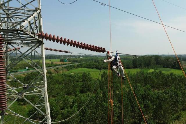 8月10日,蚌埠供電公司采用等電位帶電作業(yè)方式開展220千伏線路線夾設(shè)備發(fā)熱缺陷消除工作。朱瑩茹攝