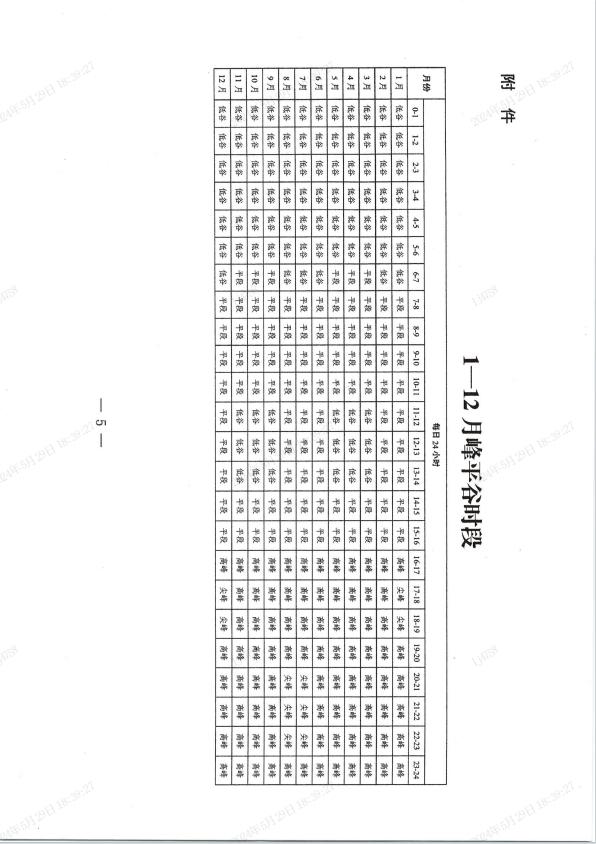 3—5月和9—11月,高峰時段16:00至24:00,低谷時段0:00至6:00、11:00至14:00,其他時段為平段。