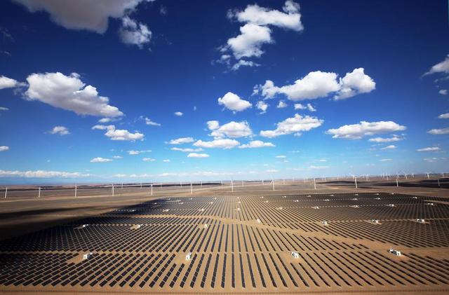 正值進(jìn)入小寒,在新疆東部的哈密十三間房,勁風(fēng)飛馳,一座座潔白的大型風(fēng)機(jī)不停歇地旋轉(zhuǎn)。在新疆南部的塔克拉瑪干沙漠,晴空萬里,一片片亮閃閃的光伏電池板如中央空調(diào)一樣,正在向塞外遠(yuǎn)方輸送著綠色“暖氣”。