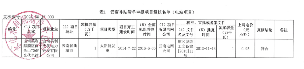 根據(jù)《財政部辦公廳關(guān)于開展可再生能源發(fā)電補貼項目清單審核有關(guān)工作的通知》(財辦建〔2020〕6號)和《國家可再生能源信息管理中心關(guān)于可再生能源發(fā)電補貼項目清單申報與審核工作有關(guān)要求的公告》等文件要求,相關(guān)可再生能源發(fā)電企業(yè)對滿足條件的可再生能源發(fā)電項目進行補貼清單申報,經(jīng)云南電網(wǎng)初審、云南省能源局審核確認、國家可再生能源信息管理中心復(fù)核。現(xiàn)將國家可再生能源信息管理中心復(fù)核通過的云南補貼清單申報項目復(fù)核名單(電站項目)予以公示。