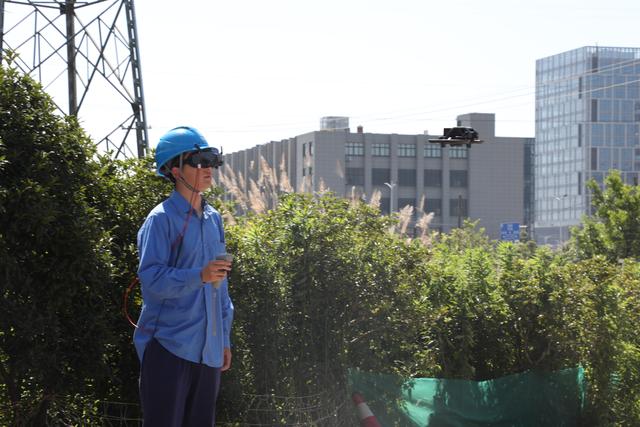 圖為工作人員應(yīng)用飛行眼鏡操控?zé)o人機(jī),對(duì)配電線(xiàn)路開(kāi)展沉浸式巡線(xiàn)。新華社發(fā)(邵哲文 攝)