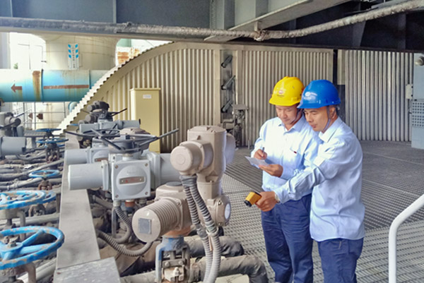 圖為該公司點檢人員正在進行6號鍋爐閥門內漏情況排查