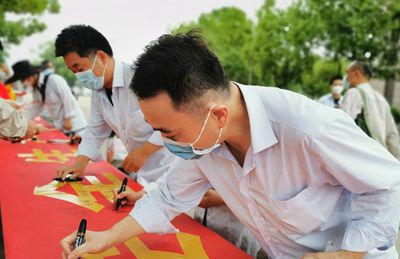 7點(diǎn)30分以后,陸續(xù)進(jìn)場上班的干部職工沐浴著初夏明媚的陽光,感受著安全穩(wěn)定的和諧氛圍,在寫有“安全生產(chǎn)月”簽名活動(dòng),在寫有“遵守安全生產(chǎn)法 當(dāng)好第一責(zé)任人”紅色橫幅上,鄭重簽下自己的名字,快速瀏覽宣傳手冊(cè),以這種方式作出嚴(yán)肅承諾,嚴(yán)格落實(shí)安全生產(chǎn)規(guī)章制度,堅(jiān)決當(dāng)好自己崗位的“第一責(zé)任人”,切實(shí)守護(hù)個(gè)人安全,共同保障企業(yè)安全。