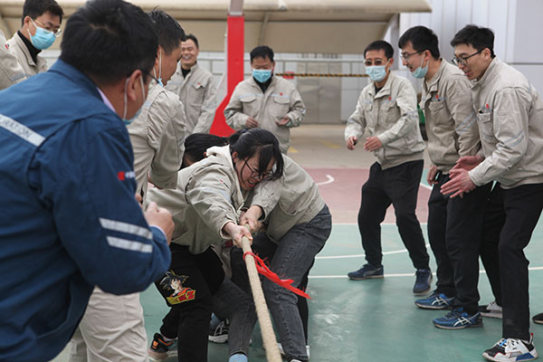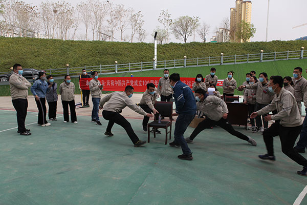 活動由《五人六足跑》《合作共贏》《黨史知識我知道》《紅歌接力》《拔河大賽》等5個項目組成。在《五人六足跑》《合作共贏》項目中,將各參賽隊員的默契表現(xiàn)展現(xiàn)的淋漓盡致,他們齊心協(xié)力、團結(jié)一致,充分展示了廣大職工充滿活力、拼搏向上的精神面貌。《黨史知識我知道》《紅歌接力》項目將整場活動推向高潮,尤為突出的是廣大職工掌握黨史知識的扎實度,每遇一題,各參賽隊反應(yīng)迅速,競相展開黨史知識作答,正確率高、回答速度快,比賽中難分伯仲。在《拔河大賽》項目中,各隊都顯示出最強的比賽陣容,只見隊員們緊握長繩,卯足了勁拼命往后拉,哨子聲、吶喊聲此起彼伏,現(xiàn)場氣氛異常激烈。