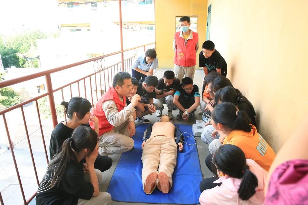 活動現(xiàn)場,青年志愿者給孩子們發(fā)放了安全環(huán)保宣傳手冊及宣傳單,給孩子們認真講解交通安全、消防滅火和生活中的安全防護知識,緊緊圍繞“遵守安全生產(chǎn)法 當好第一責任人”主題,為孩子們進行“面對面、零距離、互動式”宣講、普及、解答有關(guān)應(yīng)急救援知識。借助橡皮人給孩子們培訓心肺復蘇急救知識,詳細講解操作流程和注意事項,并指導孩子們親自上手操作實踐,提升孩子們的應(yīng)急防護能力。