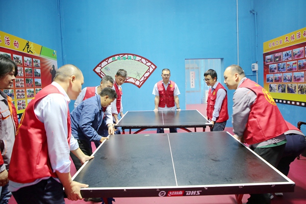 當天上午9時,該公司招募了來自三期項目黨支部的10余名黨員志愿者,開展了第一次“陜電之光”志愿服務活動,為當晚即將進行的湖南石門五洲乒乓球俱樂部“五周年慶典暨健平源杯”乒乓球團體賽布置場地?;顒又?,志愿者們齊心協(xié)力將乒乓球臺、比賽圍欄以及其他比賽用具等抬至規(guī)定的位置,精心布置乒乓球團體賽活動場地,展現(xiàn)了無私奉獻、團結(jié)友愛、助人為樂、積極向上的志愿風采。