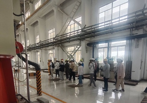 徐州公司發(fā)電部專工為能動學院學生進行了發(fā)電廠生產流程介紹,并一同前往百萬機組汽機房、鍋爐房、集控室等地進行現(xiàn)場生產實習。