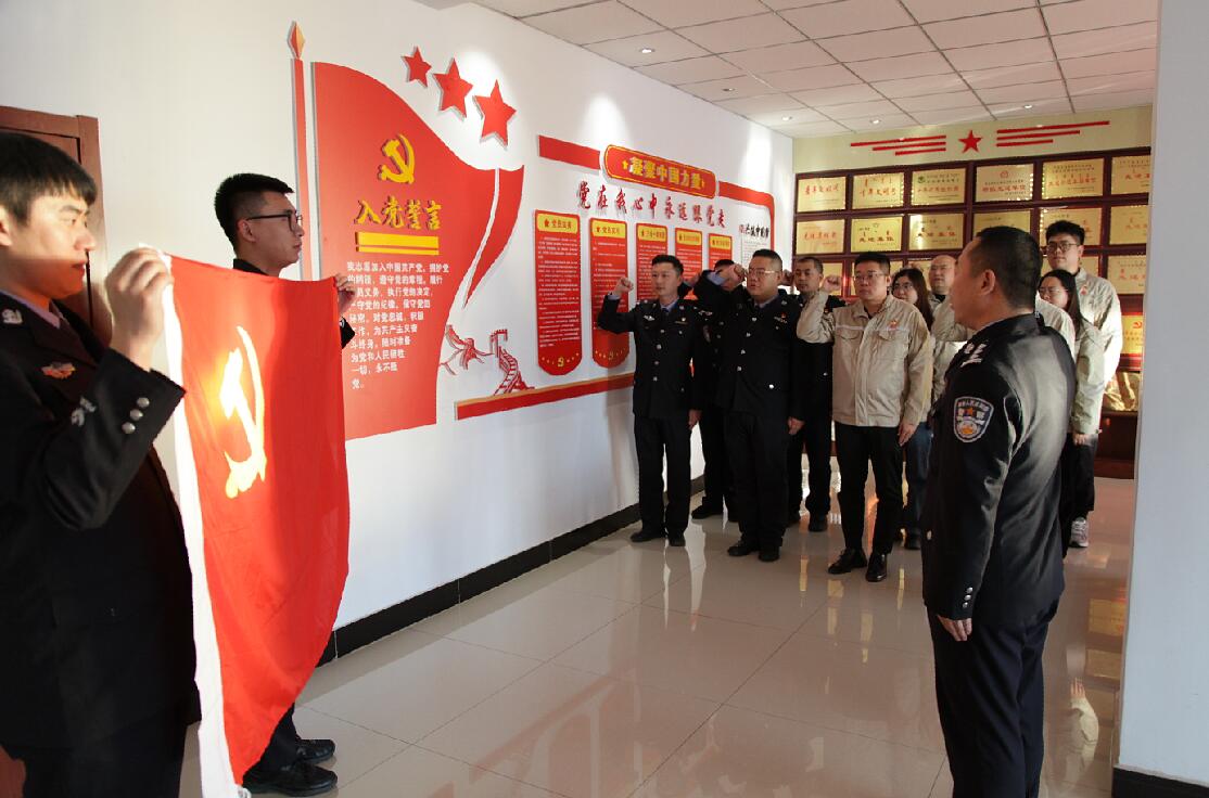 重溫入黨誓詞,同守奮斗初心?;顒?dòng)在寶力根派出所所長(zhǎng)的帶領(lǐng)下,參加活動(dòng)的警企雙方黨員干部共同重溫了入黨誓詞,回顧自己加入黨組織時(shí)的錚錚誓言,進(jìn)一步堅(jiān)定了自身全心全意為增強(qiáng)人民群眾獲得感、幸福感、安全感而努力工作的初心,以及對(duì)黨忠誠(chéng)、服務(wù)人民、紀(jì)律嚴(yán)明的使命,也在寶力根派出所和錫盟新能源事業(yè)部之間架起了一座人民警察與人民群眾魚水情深的“警民橋”,切實(shí)提高了警企雙方的工作聯(lián)動(dòng)、優(yōu)勢(shì)互補(bǔ)。