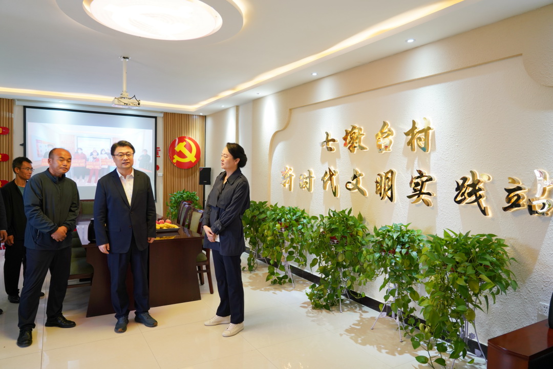 期間,王國金一行參觀了西靖鎮(zhèn)村集體經(jīng)濟產(chǎn)業(yè)園、七墩臺村新時代文明實踐站、七墩臺村酒坊和村級服務(wù)大廳等地,聽取了駐村工作隊情況介紹,并給予指導(dǎo)和建議。
