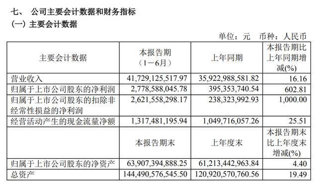中新經(jīng)緯注意到,今年8月29日,浙能電力公布的半年報(bào)顯示,上半年實(shí)現(xiàn)營收417.29億元,同比增長16.16%;歸屬于上市公司股東的凈利潤27.79億元,同比增長602.81%。