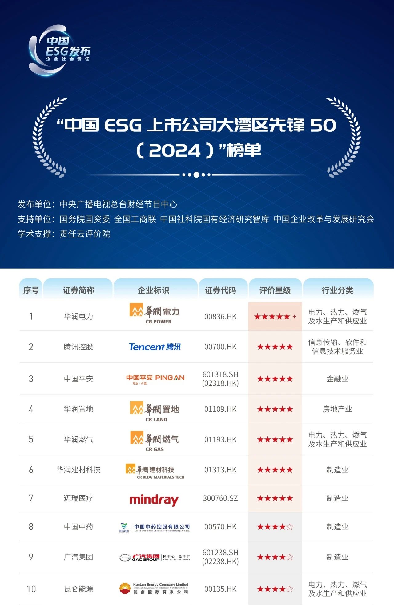 “中國ESG上市公司大灣區(qū)先鋒50(2024)”榜單