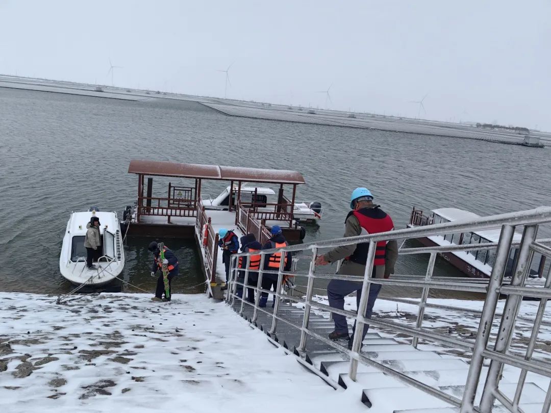 德州丁莊光伏項目現(xiàn)場,冒雪搶修集電線路故障。其他光伏電站主動對光伏支架、傳輸設(shè)備儀器開展專項安全隱患排查。各風電場運行人員及時清理設(shè)備積雪,加強對箱變、匯集線路、機組葉片等重點區(qū)域的特巡,做好隱患排查,確保設(shè)備安全穩(wěn)定運行。