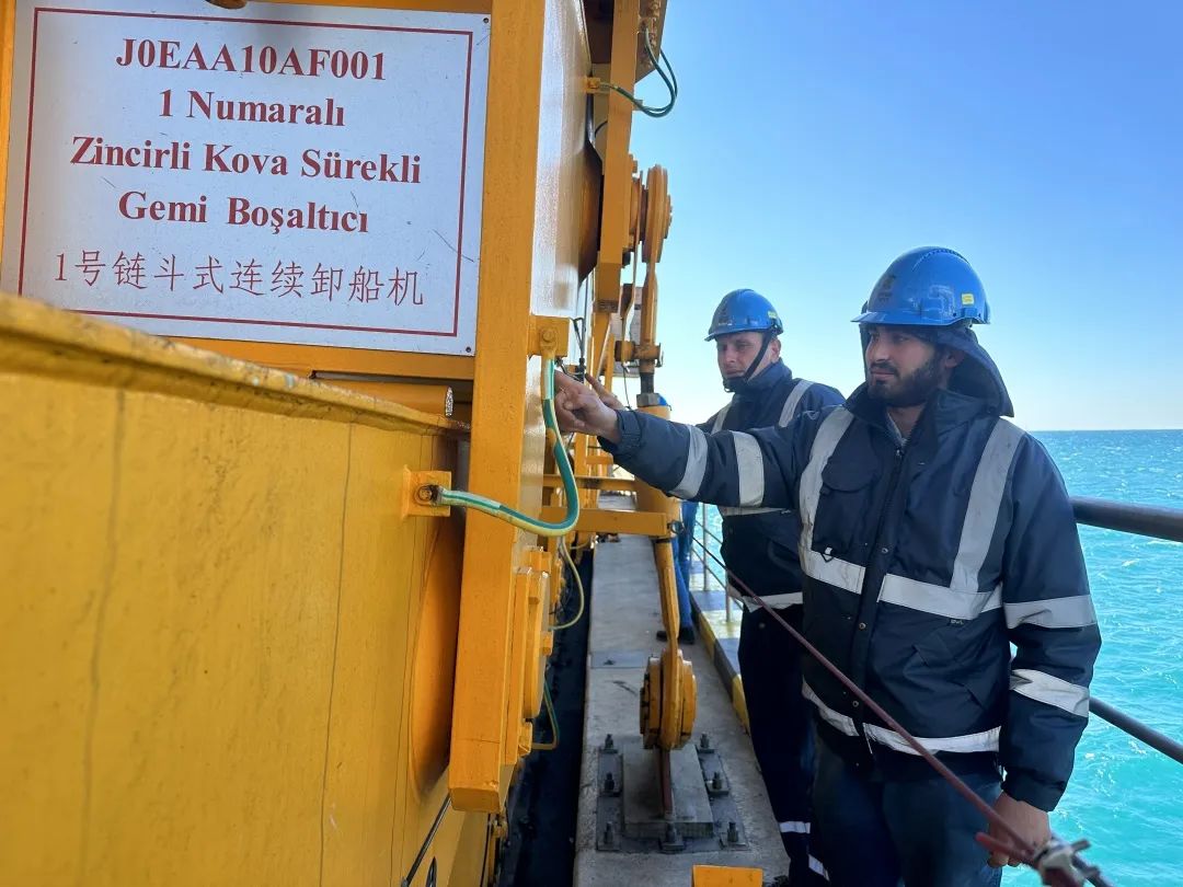 上海電力土耳其胡努特魯電廠員工正檢查卸船機(jī)工作情況
