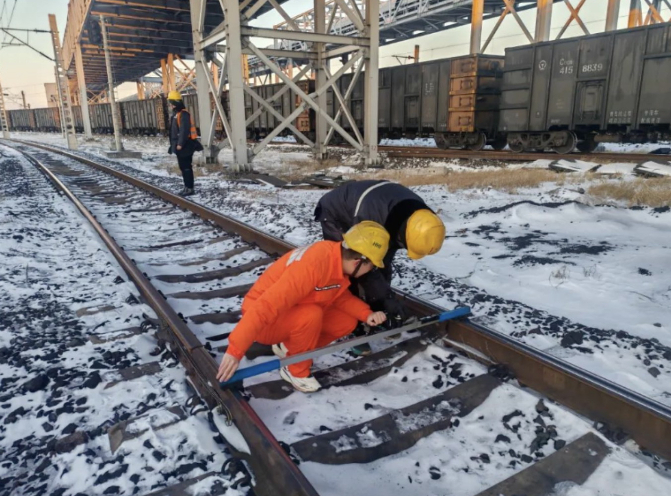 在河北唐山,華電煤業(yè)曹妃甸儲運(yùn)鐵路調(diào)度對總長5.2公里的公司鐵路專用線進(jìn)行巡查,為確保進(jìn)港列車行車安全,曹妃甸儲運(yùn)強(qiáng)化現(xiàn)場盯控,加強(qiáng)對道岔尖軌、信號指示燈等關(guān)鍵部位巡檢力度,確保列車順利集港。