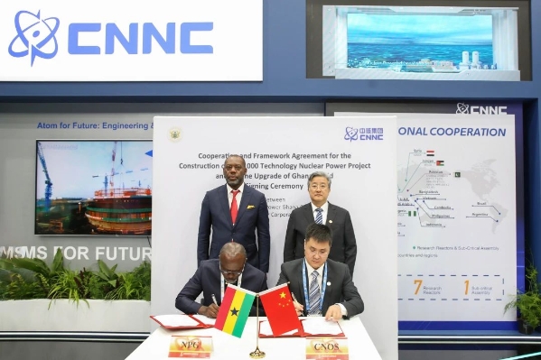 IAEA總干事拉斐爾·格羅西,世界能源理事會(huì)CEO安吉拉,WNA總干事薩瑪·萊昂,加納能源部長馬修·普倫佩,馬拉維能源部長易卜拉欣·馬托拉,法國原委會(huì)副主席皮凱蒂,加拿大核協(xié)會(huì)主席約翰·戈?duì)柭?,法國電力公司董事長呂克·雷蒙,國家能源局總經(jīng)濟(jì)師魯俊嶺、科技部中國國際核聚變能源計(jì)劃執(zhí)行中心副主任王敏、中國電力聯(lián)合會(huì)理事長辛保安等中外領(lǐng)導(dǎo)嘉賓參觀了展臺(tái)。展會(huì)期間,中核集團(tuán)與加納能源部、法國電力集團(tuán)等重要合作伙伴進(jìn)行了雙邊會(huì)談。中國中原與加納核電公司簽署了核電項(xiàng)目合作框架協(xié)議。