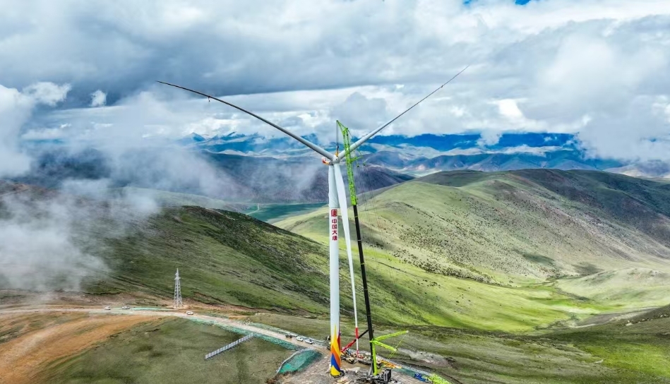 世界海拔最高風(fēng)電站大唐八宿風(fēng)電項目全部機組吊裝完成