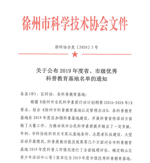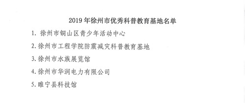 中國(guó)電力網(wǎng)訊 近日,徐州市科協(xié)發(fā)布《關(guān)于公布2019年度省、市級(jí)優(yōu)秀科普教育基地名單的通知》(徐科協(xié)辦發(fā)﹝2020﹞5號(hào)),公司在72家科普教育基地中脫穎而出,被評(píng)為2019年徐州市優(yōu)秀科普教育基地,并獲得專(zhuān)項(xiàng)獎(jiǎng)勵(lì),是徐州市唯一一家獲得表彰的企業(yè)類(lèi)科普教育基地。