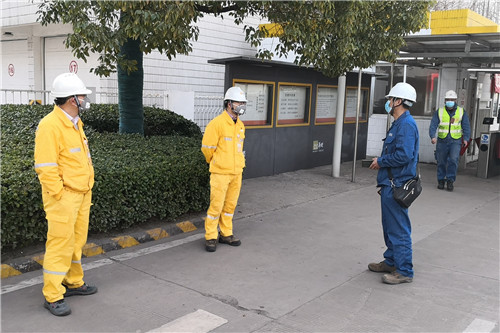 清晨7:00,檢查人員在綜合辦公樓一樓集合。陳超虎對此次監(jiān)督檢查方式、內(nèi)容、重點及分工進行了詳細布置。隨后,檢查人員分為兩組,對生產(chǎn)現(xiàn)場疫情防控措施執(zhí)行情況和人員進出公司疫情防控措施、人員到崗情況進行檢查。