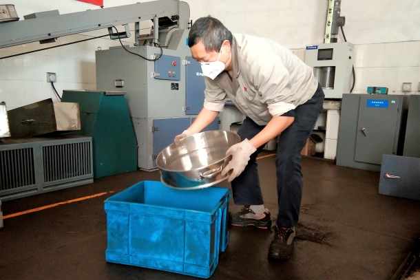 圖為該公司燃料采制員對存查煤樣抽查樣品進(jìn)行制備