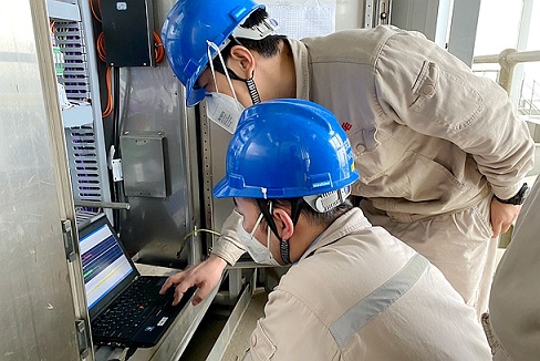 圖為該公司技術(shù)人員檢查總線設(shè)備通訊情況