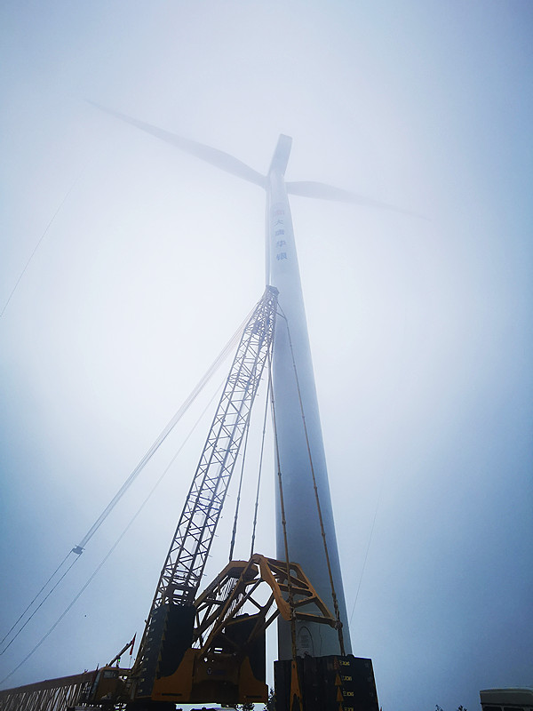 該項目自2021年8月2日全面開工建設(shè)以來,全員克服時間緊、任務(wù)重,以及夏季長時間高溫、近期溫度驟降、山上風力較大等重重困難,縝密部署,團結(jié)拼搏,以扎實的管理、良好的協(xié)調(diào)、有力的措施,特別是針對作業(yè)高峰期充分討論、采取舉措,在大件運輸、吊裝等工作中做到了有方案、有計劃、有落實。經(jīng)過節(jié)假無休、連續(xù)作戰(zhàn),先后完成了十臺風機基礎(chǔ)澆筑工作,并于10月13日正式完成首臺風機吊裝工作,呈現(xiàn)出“驕陽壁嶺轟聲震,崇山風嘯鐵臂搖”的一派火熱建設(shè)局面。