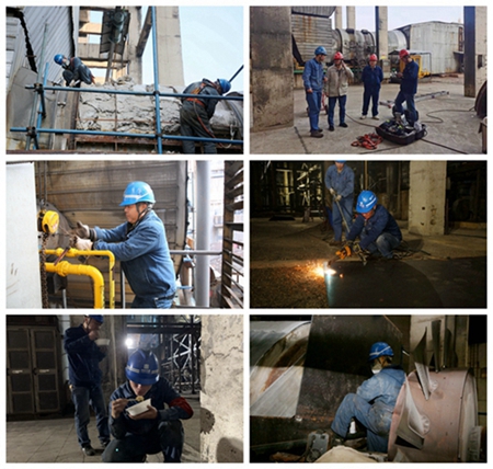 1月1日一上班沒多久,該公司熱機(jī)二班人員就接到了一個“大工程”——搶修1號爐B引風(fēng)機(jī)動葉。引風(fēng)機(jī)作為風(fēng)煙系統(tǒng)的重要設(shè)備,其動葉不能正常操作將直接影響到機(jī)組的高效穩(wěn)定運(yùn)行。盡管空氣中充斥著難聞的硫化物味道,但熱機(jī)二班搶修人員毫不畏懼,加班加點(diǎn),攻堅(jiān)克難,在起重人員、焊工人員等的協(xié)助下,通過齊心協(xié)力吊裝大鋼板阻斷返回的煙氣,保證人員安全作業(yè),于次日凌晨4時多完成B引風(fēng)機(jī)動葉搶修。為了節(jié)省時間,搶修人員中飯和晚飯都是在現(xiàn)場或站著、或蹲著吃盒飯解決。期間,該公司黨委委員、副總經(jīng)理劉陸軍和生產(chǎn)各級管理人員多次到現(xiàn)場監(jiān)督指導(dǎo),確?,F(xiàn)場作業(yè)安全。