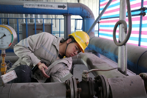 環(huán)保集控室內(nèi),該公司環(huán)保運(yùn)行二班人員正在認(rèn)真監(jiān)視,精心調(diào)整參數(shù),確保煙塵、氮氧化物、二氧化碳等達(dá)標(biāo)排放。“在環(huán)保戰(zhàn)線不知不覺工作11年了,面對越來越嚴(yán)苛的環(huán)保要求,我們一定不斷提高工作標(biāo)準(zhǔn),守好環(huán)保的紅線和底線。“剛從現(xiàn)場忙完的當(dāng)班班長徐煒堅(jiān)定地說道。