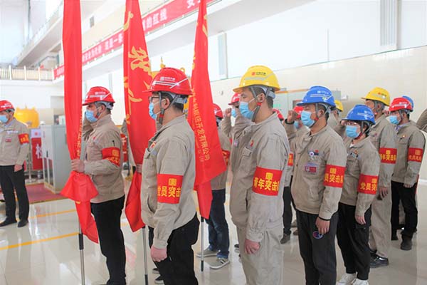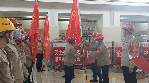 活動(dòng)中,該公司黨委委員、紀(jì)委書(shū)記、工會(huì)主席李強(qiáng)同志宣讀了公司黨委印發(fā)《關(guān)于在1號(hào)機(jī)組A級(jí)檢修工作中充分發(fā)揮黨團(tuán)組織作用的通知》的文件要求。公司黨委書(shū)記、執(zhí)行董事、總經(jīng)理薛福林同志為“1號(hào)機(jī)組A級(jí)檢修”黨員突擊隊(duì)、黨員服務(wù)隊(duì)、青年突擊隊(duì)分別授旗。生產(chǎn)一線黨員代表、青年代表分別圍繞1號(hào)機(jī)組A級(jí)檢修工作實(shí)際作了《黨員承諾》《青年承諾》。公司黨委委員、副總經(jīng)理錢(qián)明雄同志帶領(lǐng)廣大黨員在檢修現(xiàn)場(chǎng)面向鮮紅的黨旗重溫了入黨誓詞。