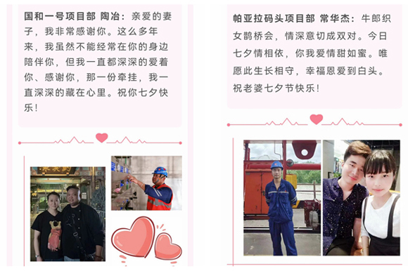“我雖然不能經(jīng)常在你的身邊陪伴你,那一份牽掛我一直深深藏在心里……”“唯愿此生長相守,幸福恩愛到白頭……”“我們相約一生守護(hù)平安和幸福,來張全家福,讓幸福定格在七夕……” 一段段真情告白,傾情訴說對伴侶、家人的真摯情感,充分彰顯出對美好生活的向往。