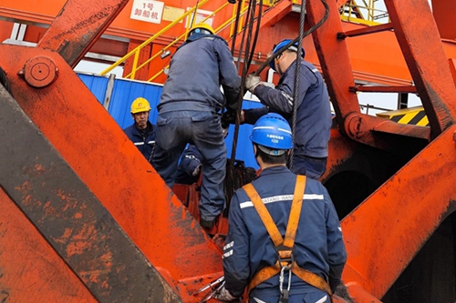 結合長江流域汛期特點,當涂碼頭項目部提前制定防汛應急預案,重點對碼頭卸船機、輸煤皮帶及排水系統(tǒng)進行全面檢查,特別對關鍵設備進行“體檢式”排查。技術人員發(fā)現(xiàn)卸船機鋼絲繩存在磨損隱患后,立即組織專業(yè)隊伍進行更換,并對所有起重設備進行潤滑保養(yǎng),確保汛期電煤接卸高效順暢。同時,項目部認真開展防臺防汛防淹溺綜合應急演練,通過實戰(zhàn)演練檢驗預案的可操作性,提升員工突發(fā)情況處置能力。此外,項目部還儲備了充足的防汛物資,多措并舉為電廠“口糧”供應保駕護航。
