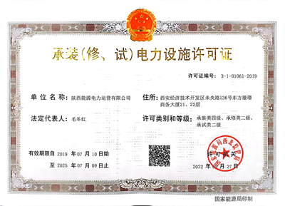 陜投電力運(yùn)營(yíng)《承裝(修、試)電力設(shè)施許可證》升級(jí)為二級(jí)資質(zhì)