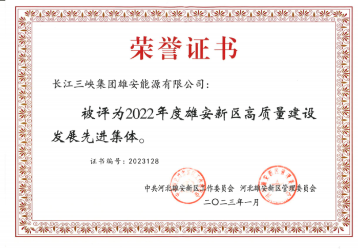2022年,三峽雄安公司全體黨員干部職工牢記“國之大者”,主動服務(wù)國家戰(zhàn)略,全面融入雄安新區(qū)建設(shè),工作取得了突破性進(jìn)展:2022年6月成為唯一一家和新區(qū)三縣簽訂戰(zhàn)略協(xié)議的中央企業(yè),謀劃“清潔能源+生態(tài)環(huán)保+鄉(xiāng)村振興”開發(fā)模式,在三縣均有生態(tài)環(huán)保、清潔能源項(xiàng)目落地,積極展現(xiàn)三峽集團(tuán)講政治、強(qiáng)擔(dān)當(dāng)良好形象,獲得國務(wù)院國資委官方媒體報道并受到新區(qū)管委會高度肯定。