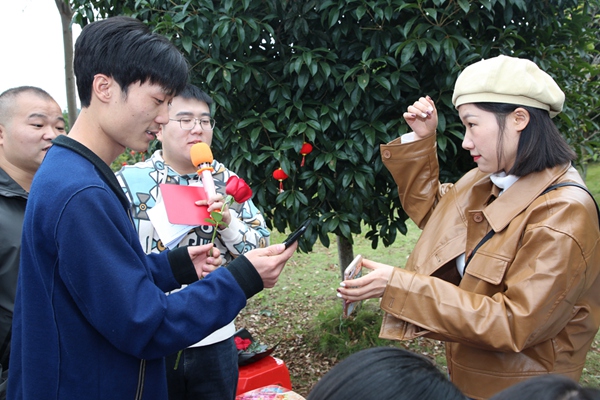 青年聯(lián)誼活動在熱情洋溢的氛圍中拉開了序幕?;顒觾?nèi)容包括自我介紹、才藝展示、有獎?chuàng)尨稹F(xiàn)場分組、游戲環(huán)節(jié)和玫瑰結(jié)緣牽手等。幾輪有獎競答,預(yù)熱了活動現(xiàn)場。隨后,各單位隊(duì)長開始挑選隊(duì)員,進(jìn)行分組,分成了紅、藍(lán)、橙、紫4組。在主持人的帶動下,每組以競賽的方式完成“你演我猜”和“雙龍戲珠”等一系列豐富多彩的游戲環(huán)節(jié),青年男女之間進(jìn)行了一次次的互動交流和團(tuán)隊(duì)協(xié)作,緩解了初次見面的緊張羞澀,也讓大家在歡聲笑語中,拉近距離、加深了解,將現(xiàn)場氣氛推向了一個又一個高潮。