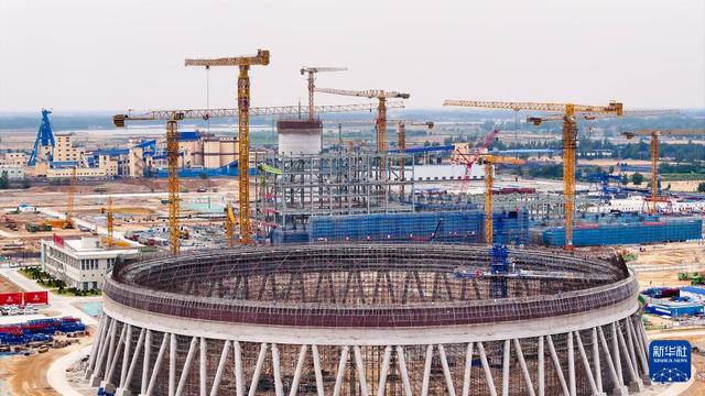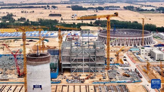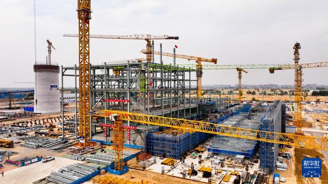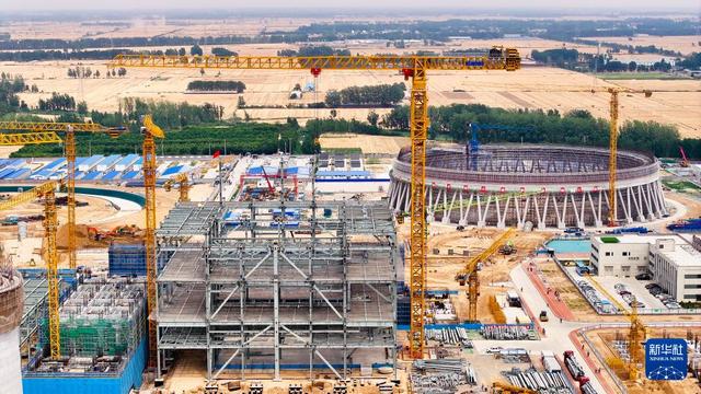 6月5日拍攝的位于山東省鄆城縣的大唐鄆城630℃國家電力示范項目建設(shè)現(xiàn)場(無人機照片)。