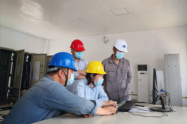 圖為該公司員工在遠程試驗凈水站排泥水處理系統(tǒng)。