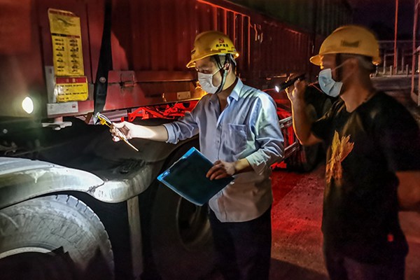 煤車(chē)入廠前,安保人員嚴(yán)把疫情防控關(guān),嚴(yán)格檢查有效的核酸檢測(cè)報(bào)告等證明,全部正常后才一一放行。